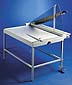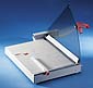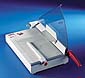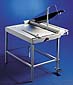 movable front gauge with hairline edge cutting device and paper supports.